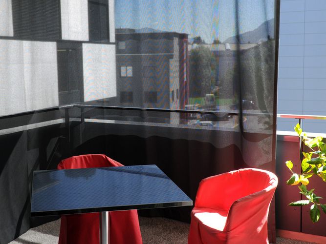 Sichtschutz für Balkon, Terrasse oder Garten. Optimale Lichtverhältnisse durch elegante Vorhangstoffe im Outdoor-Bereich.