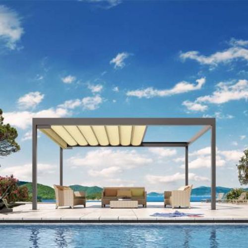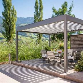 Bavona HARD-TOP mit variabel neigbaren Aluminium-Lamellen für perfekten Schutz gegen Sonne und Regen.